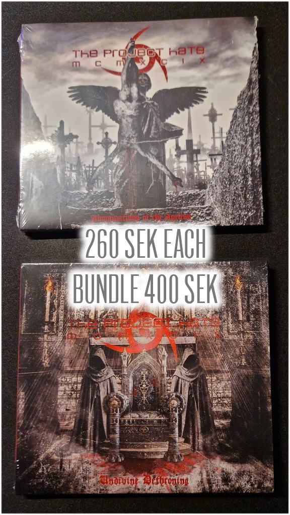 In an attempt to get rid of the remaining digipaks for our 2023 album, “Abominations of the Ageless”, as well as the leftover copies of our brand new one, “Undivine Dethroning”, here’s your chance to get them both for 400 SEK. That includes postage and packing to anywhere in the world.