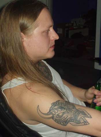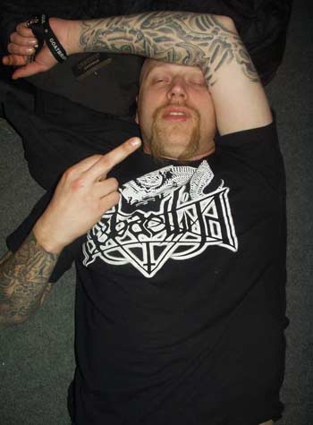 We nailed another song today.. Or almost that is… Some minute left before completion. Mieszko’s doing a hella good job, me and Mazza just orders him around to fulfill our visions. Halfway there now or something. We have added alot of cool shit within the songs that will raise a eye-brow or 666, believe me.